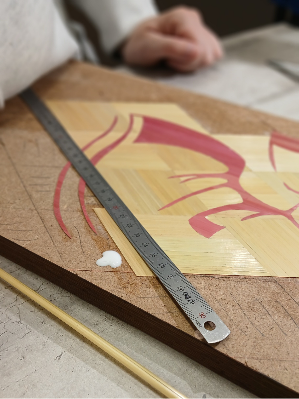 L’art de la marqueterie de paille est un travail de précision, minutie et patience. Il faut savoir manier parfaitement le matériel nécessaire tels que le scalpel, le réglet ou encore le plioir. Une fois appliquée, la paille de seigle dans son essence est durable, imperméable et précieuse. C’est un savoir-faire qui ne nécessite aucune machine, tout est entièrement fait à la main dans mon atelier de marqueterie de paille en Bretagne.
